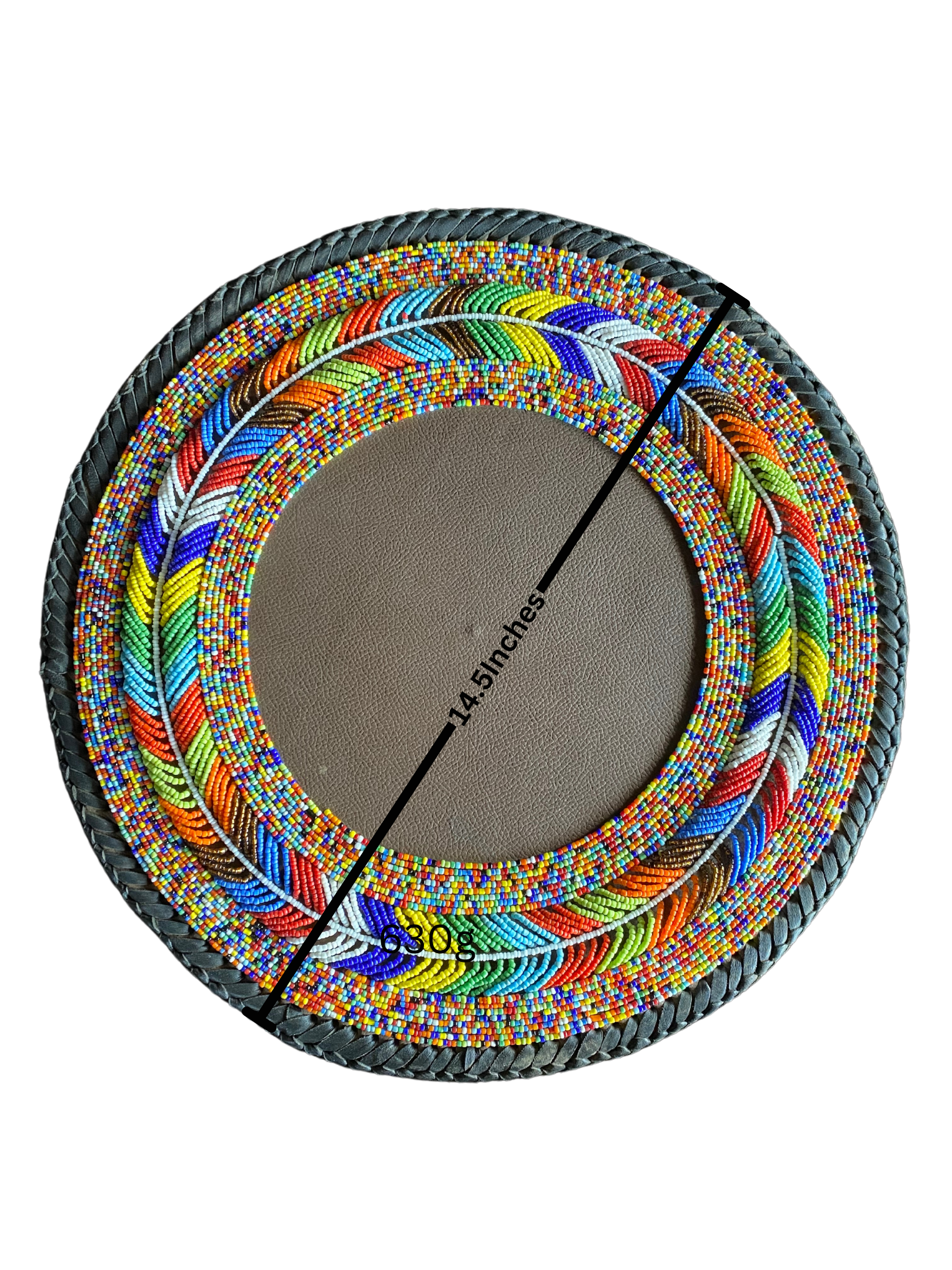 - One(1) round beaded leather table mat