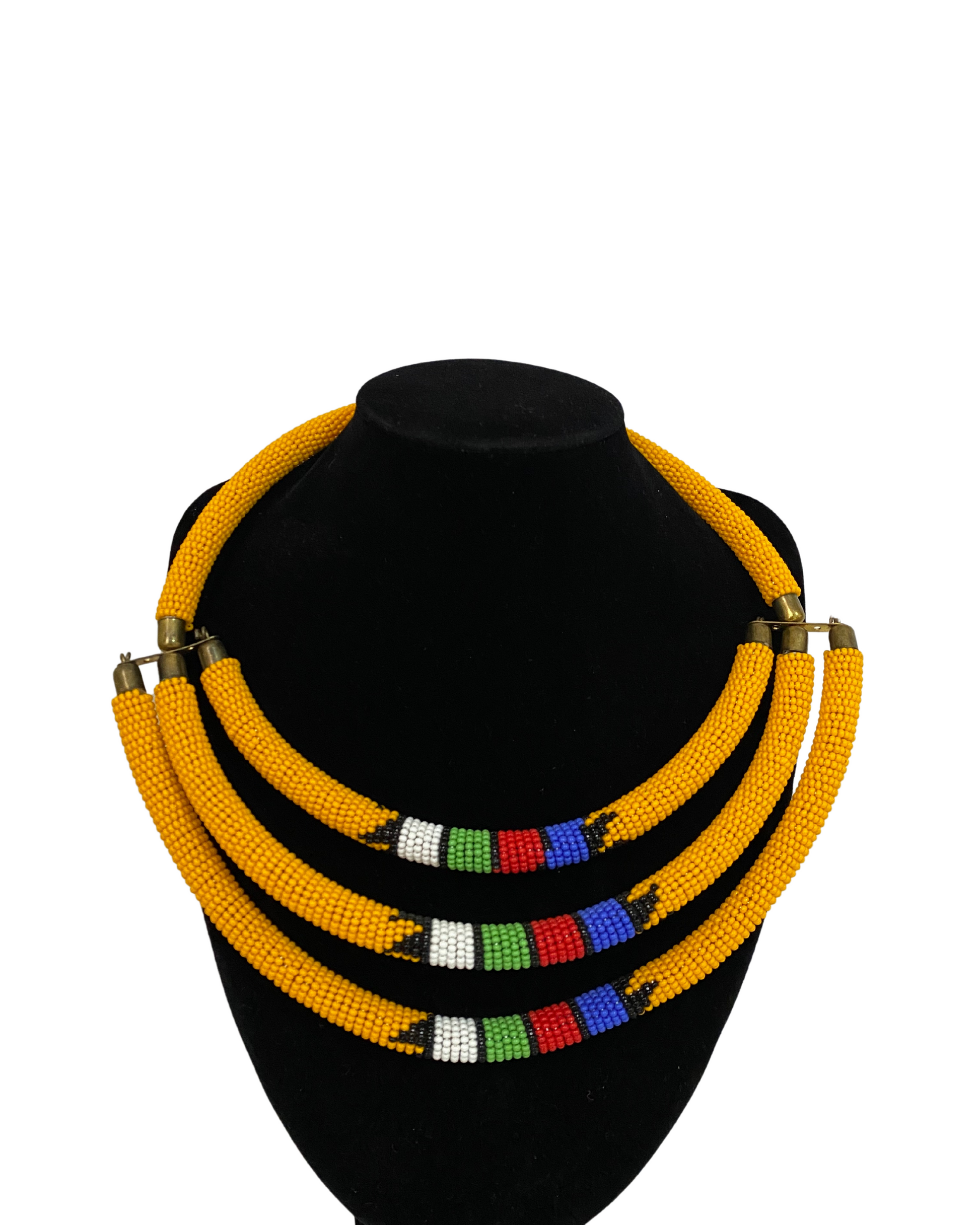 Regional Diversity: Africa's vast cultural diversity is reflected in the wide range of styles, motifs, and materials used in beaded necklaces. Each region and ethnic group has its own unique beadwork traditions, incorporating locally sourced materials and reflecting distinct cultural aesthetics.