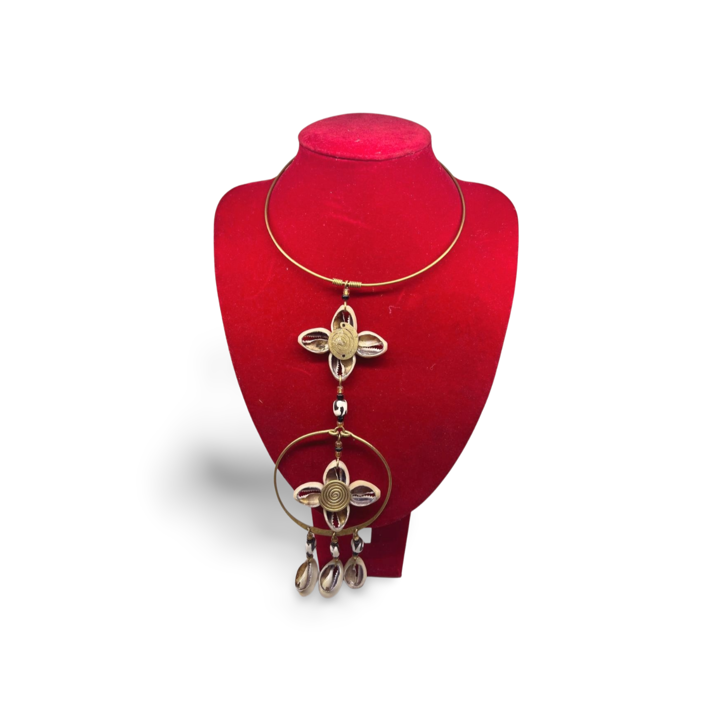 The necklace is made from high-quality brass, known for its durability and resistance to tarnishing. This ensures that it remains beautiful and wearable for years, aging gracefully while retaining its shine. Each piece is meticulously handcrafted by skilled artisans, making it not just an accessory but a work of art that celebrates traditional African craftsmanship.