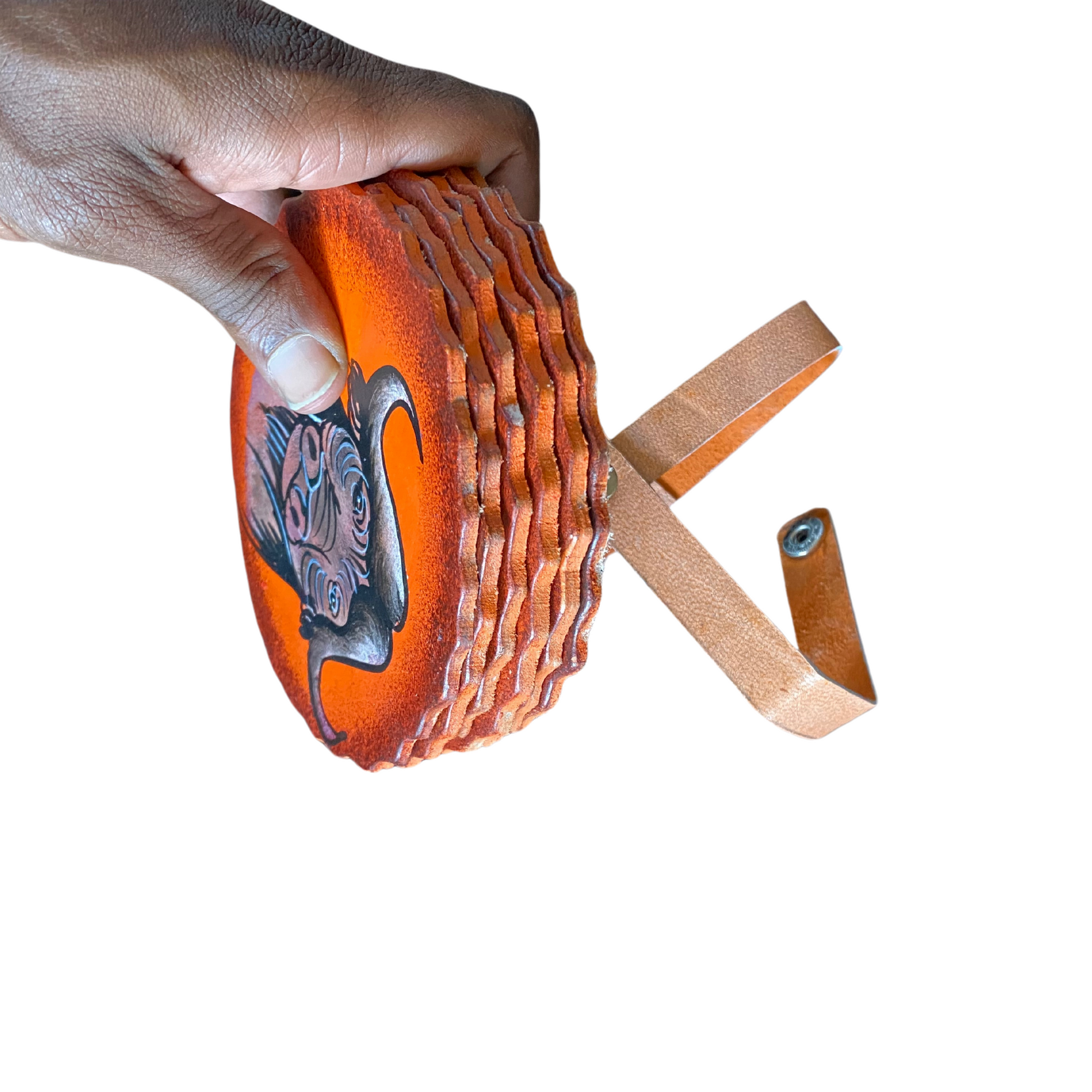 Add some flair to your home with this vibrant and unique African Six Painted Leather Table Set Saucer. Hand-painted by skilled artisans, each set is one-of-a-kind and will make a statement in any room. Complete your décor with this beautiful and functional piece..