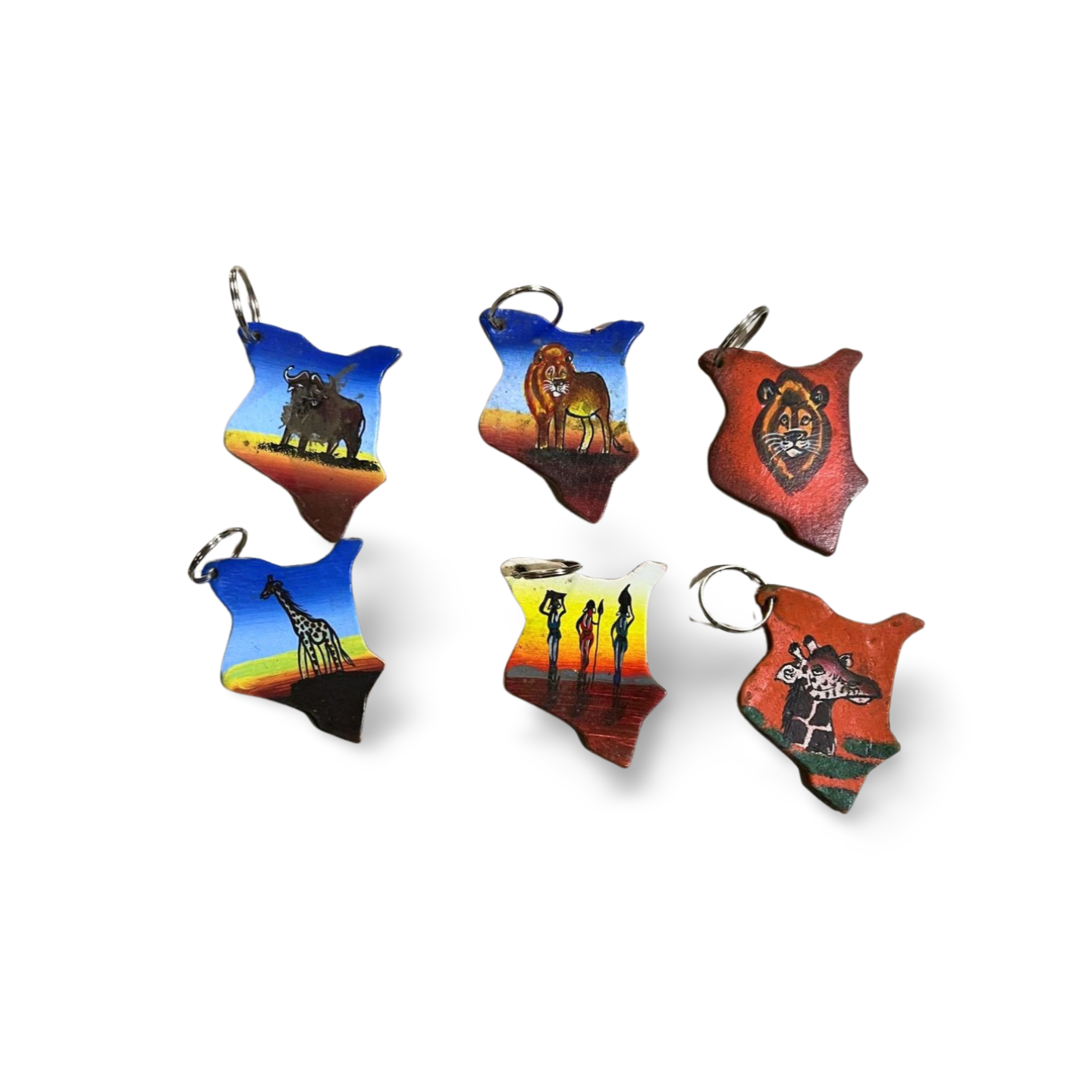 African-themed Painted Leather Key Holder Set of 6