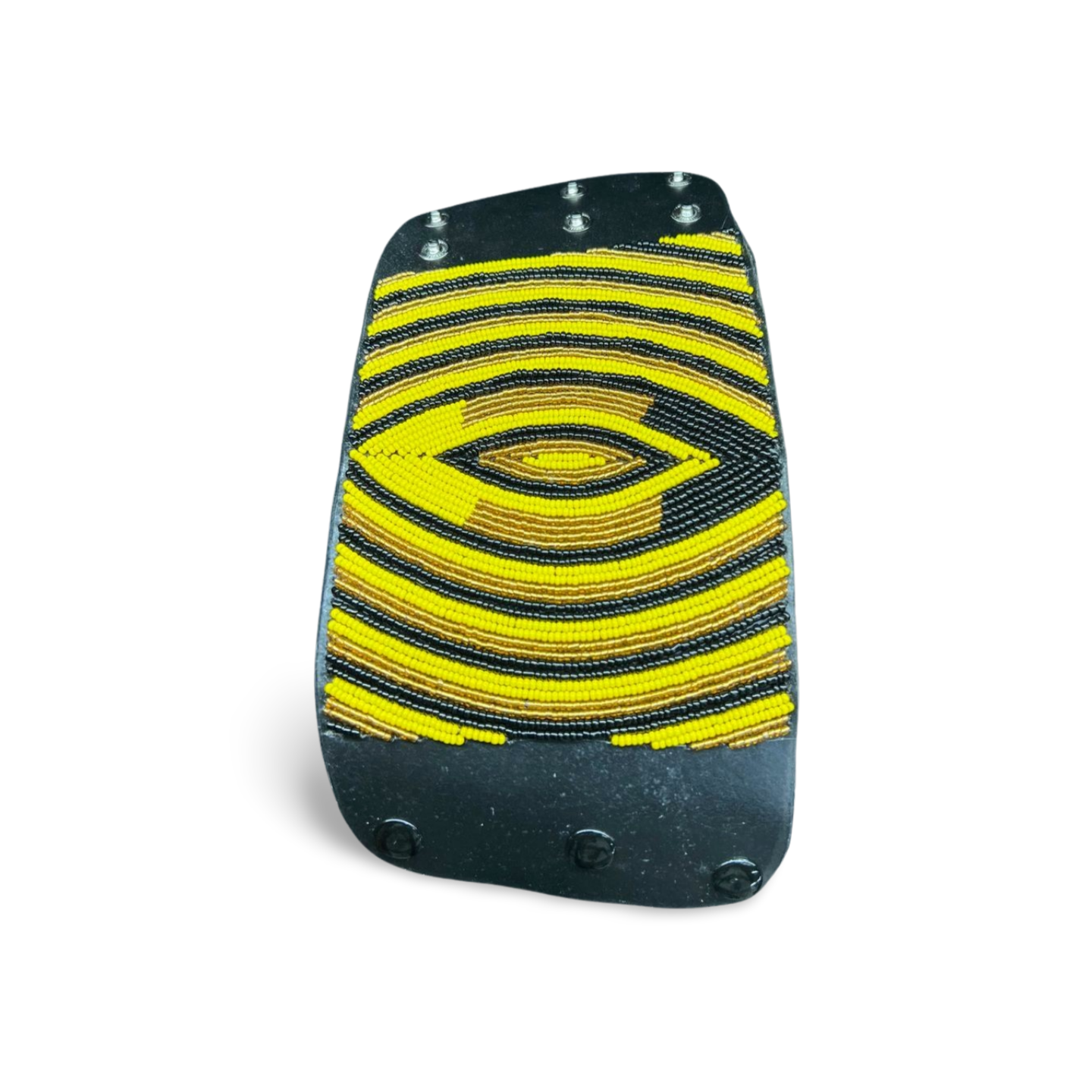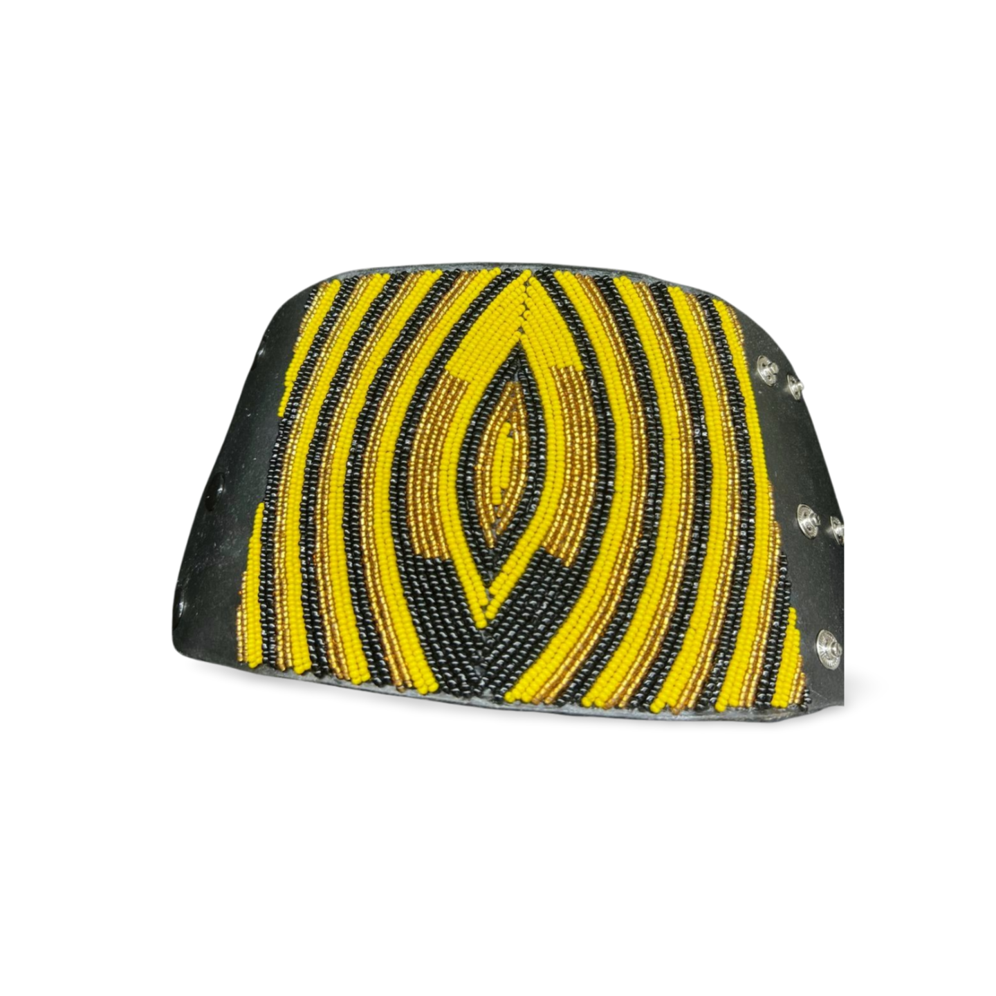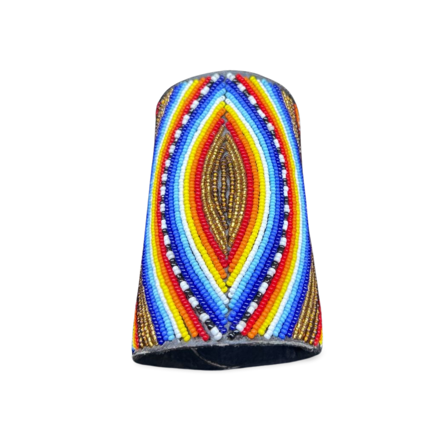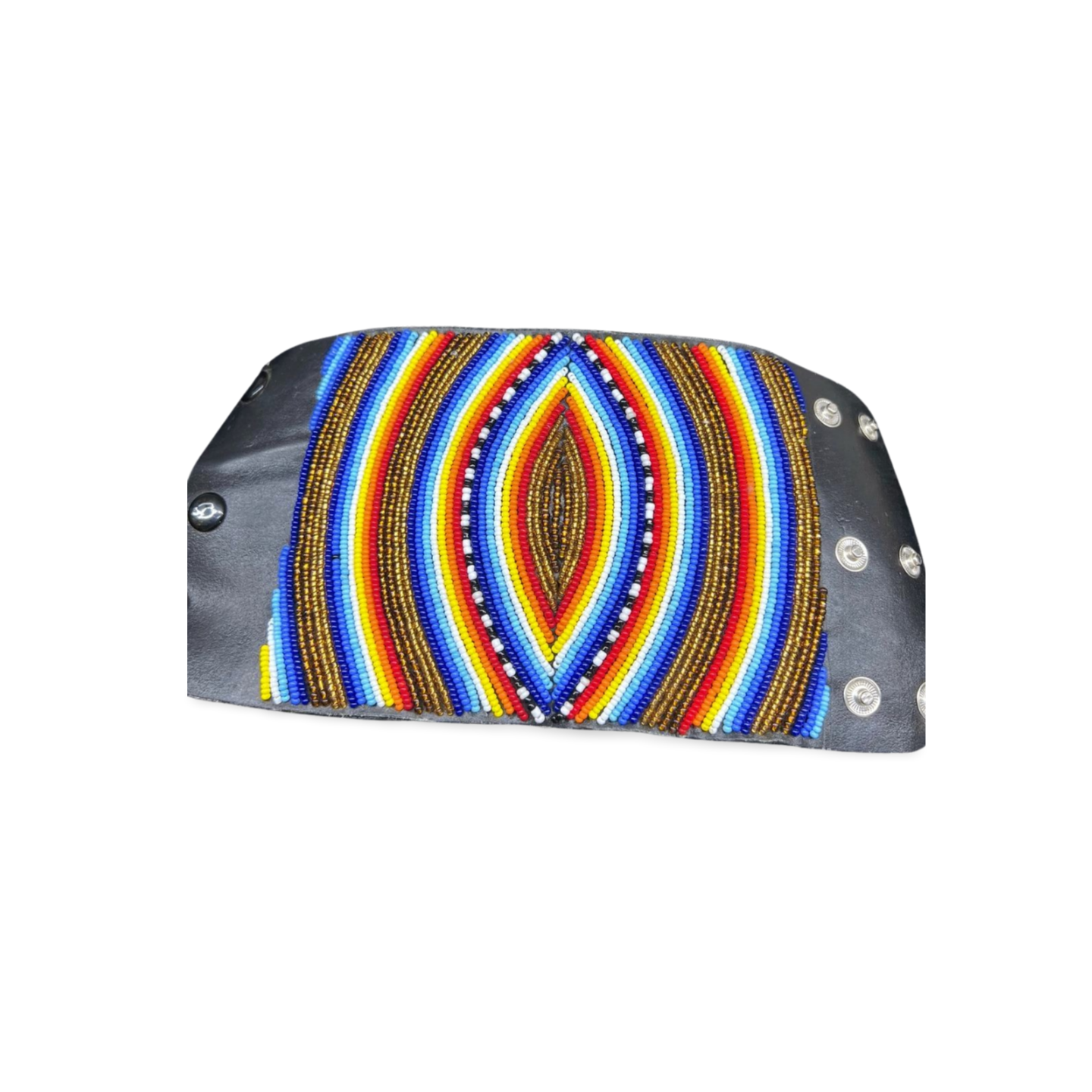 The Maasai people have used beadwork as a form of expression for centuries, with patterns and colors representing status, age, and marital status. Traditionally, beads were made from natural materials like clay, bone, and shells, but glass beads introduced through trade became the medium of choice. Leather accessories, like cuffs, have long been part of Maasai attire, combining practicality with beauty. The integration of beadwork with leather symbolizes a blending of past and present, keeping the tradition alive in a modern form.