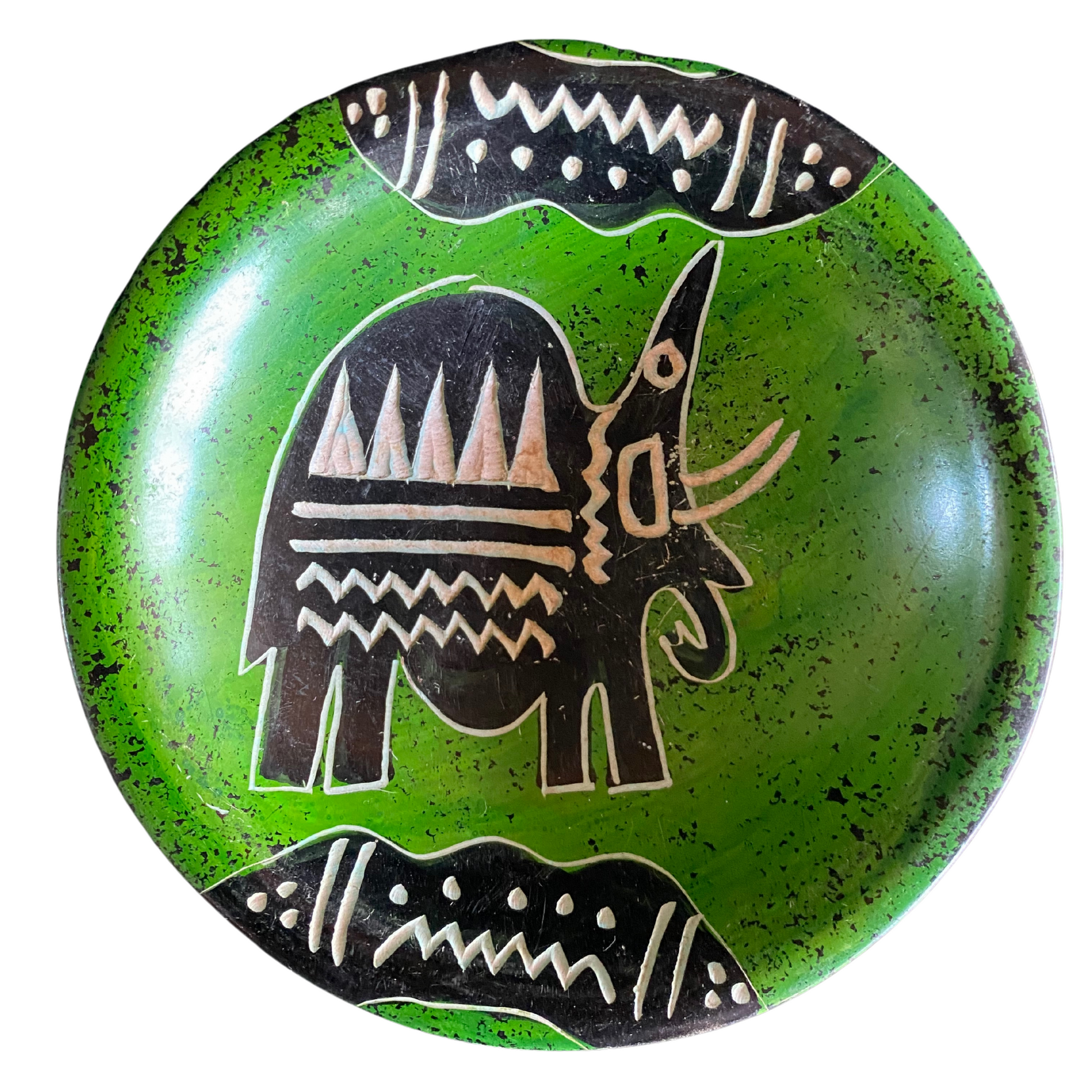 Soapstone, also known as steatite, is a metamorphic rock primarily composed of talc, with varying amounts of other minerals such as chlorite, pyroxenes, micas, amphiboles, and carbonates. In Kenya, soapstone has been traditionally quarried and used for various purposes, including carving sculptures and creating utensils like bowls and plates.