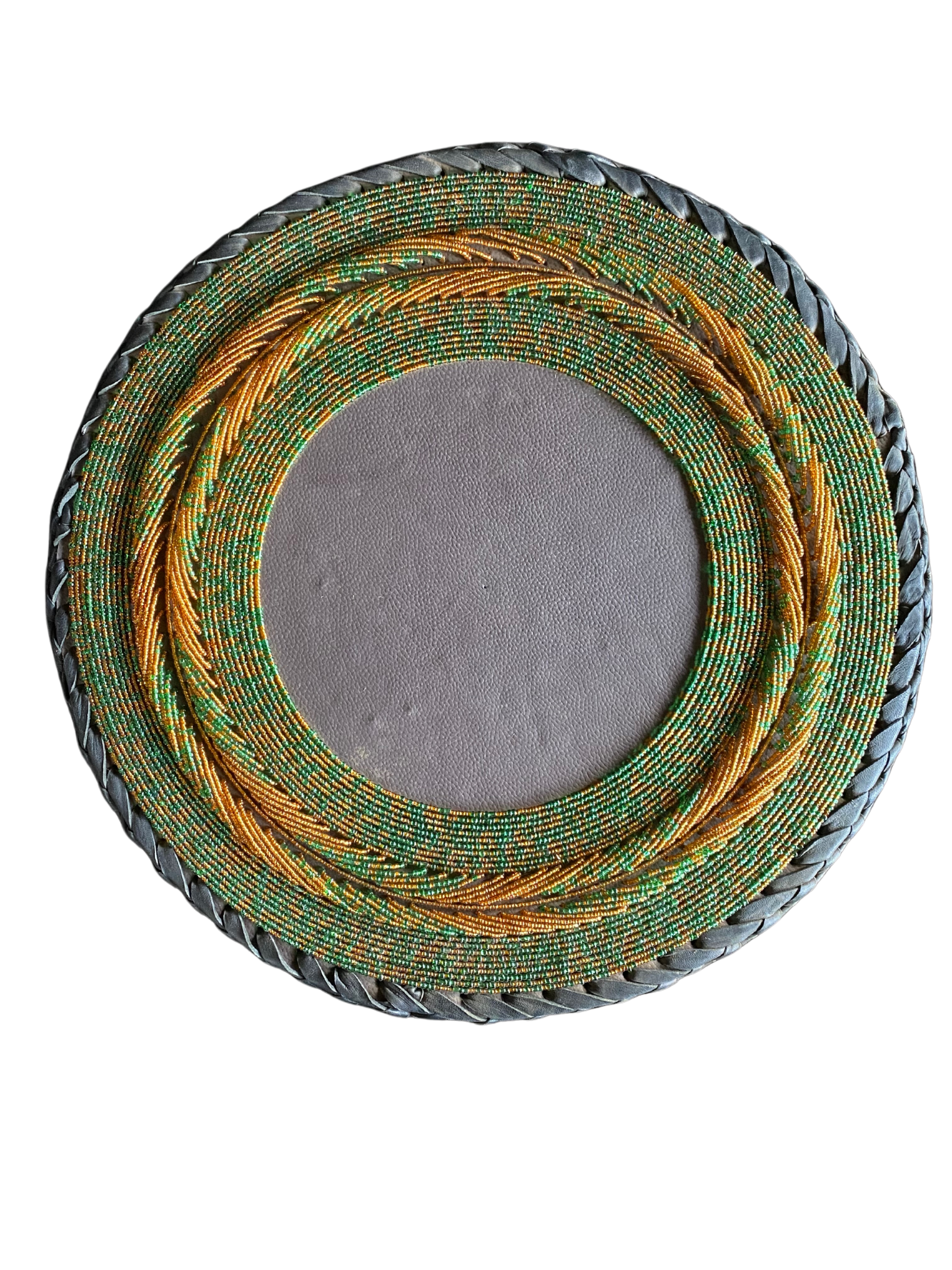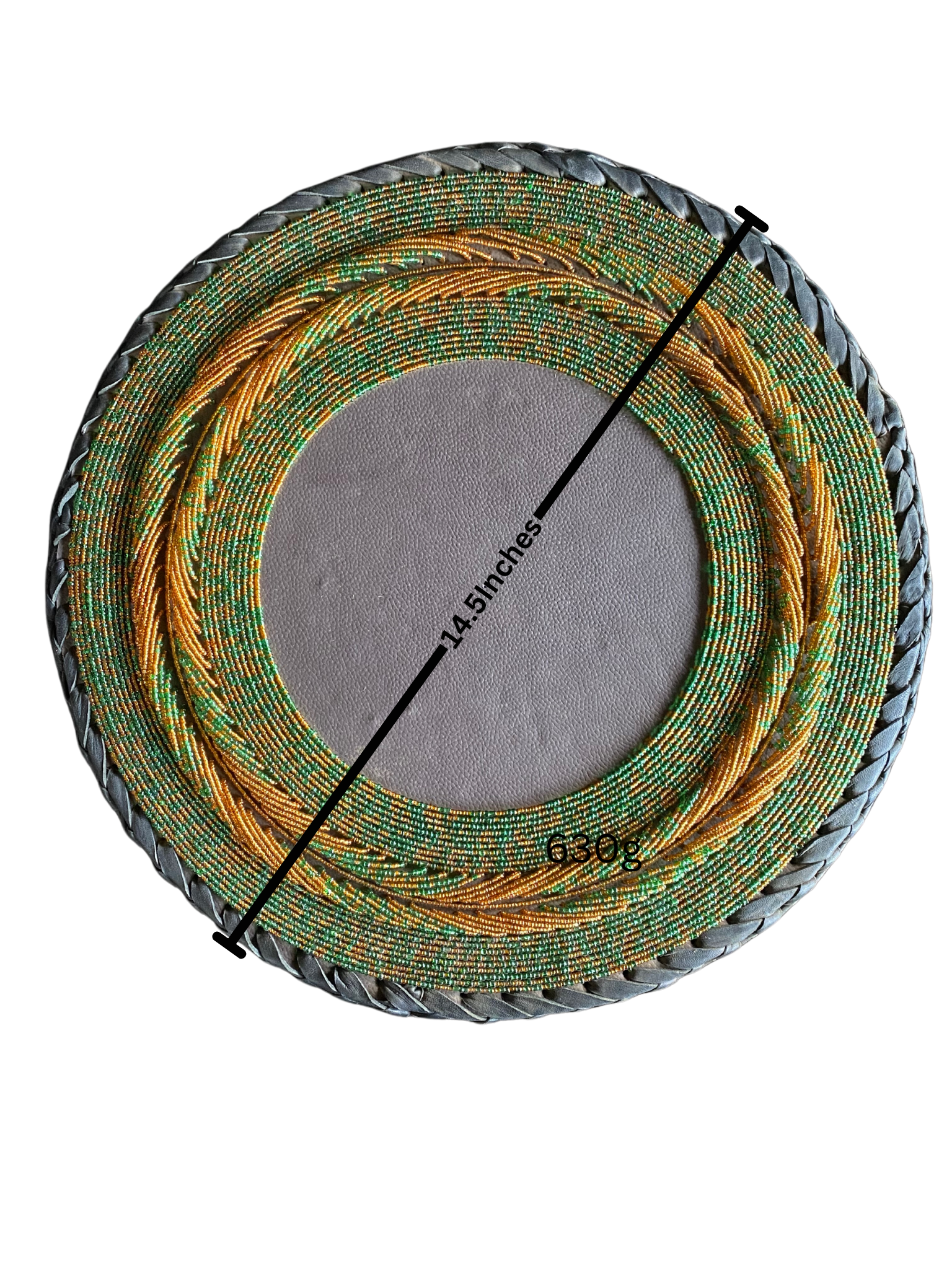 14 Inches African Leaf Beaded-Leather Table Mat(Green/Gold)