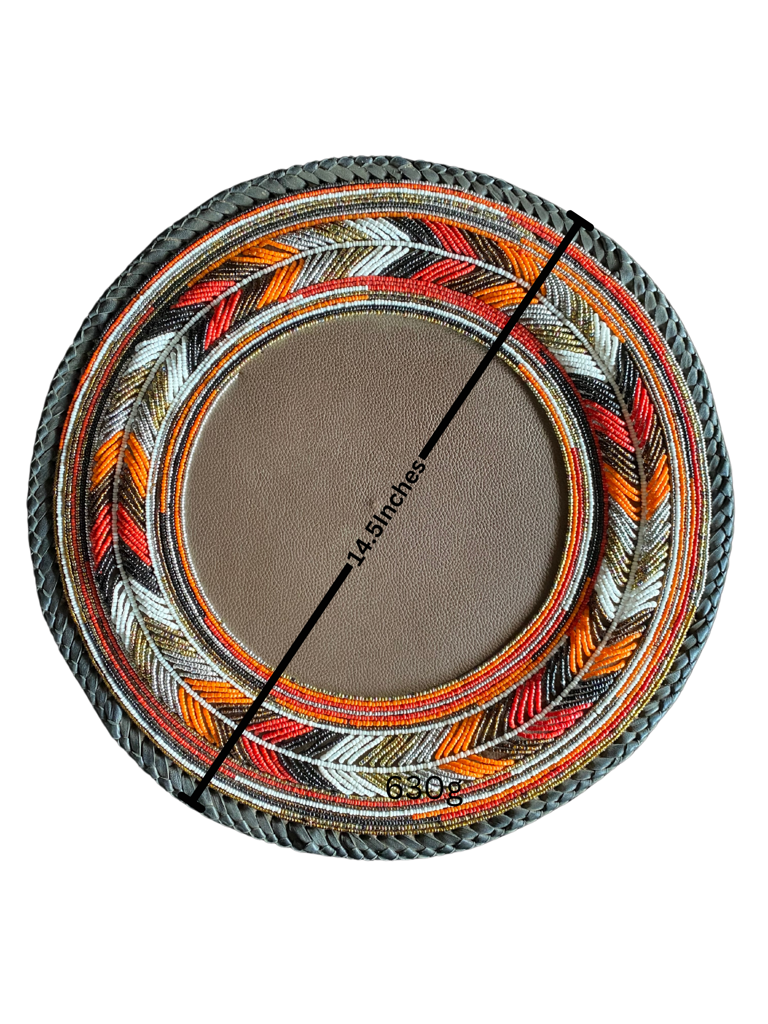 14 Inches African Leaf Beaded-Leather Table Mat(Orange/Black)