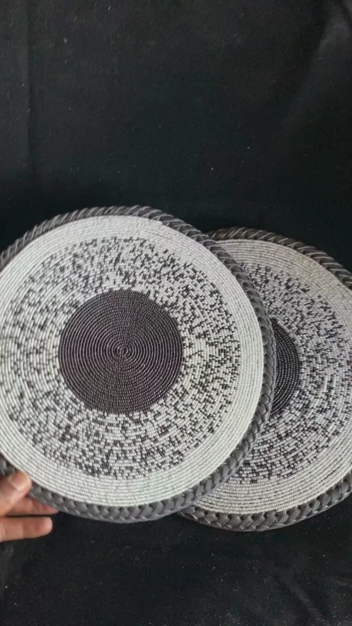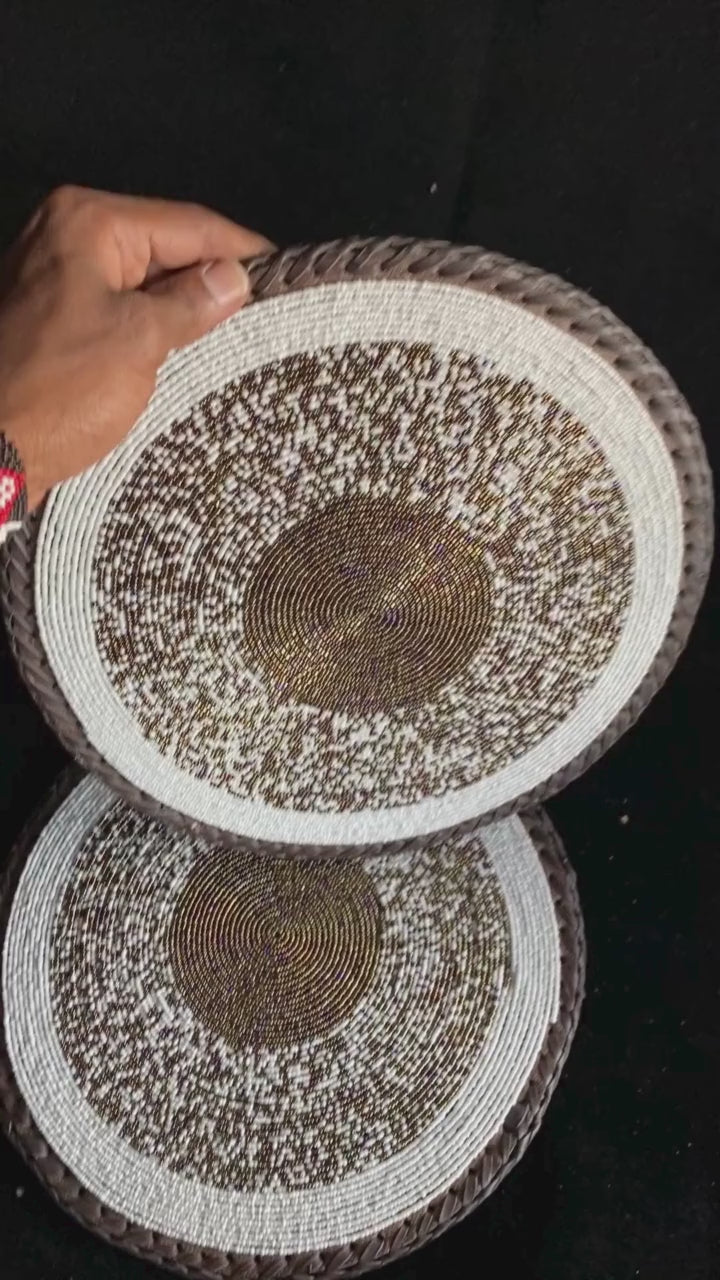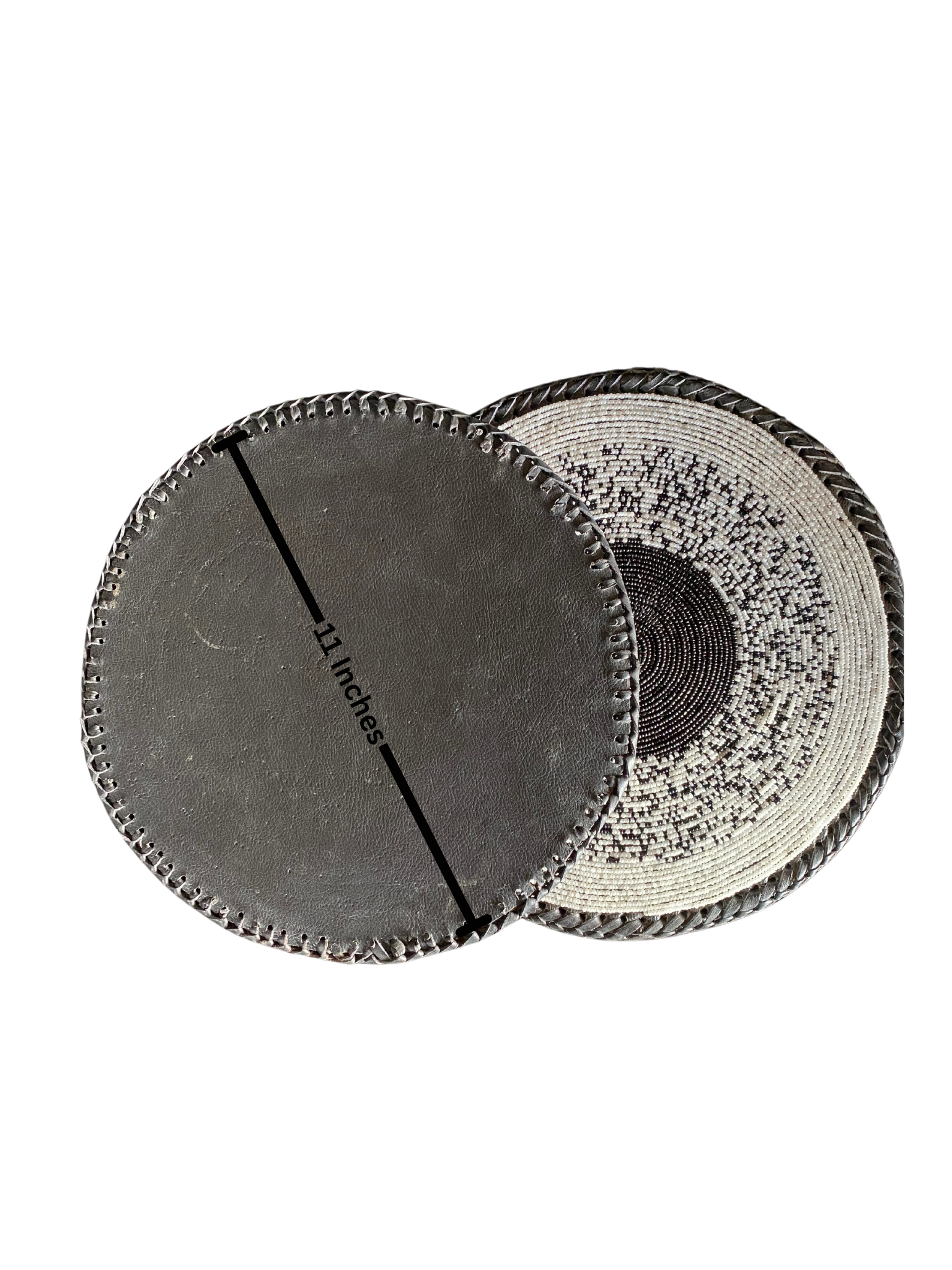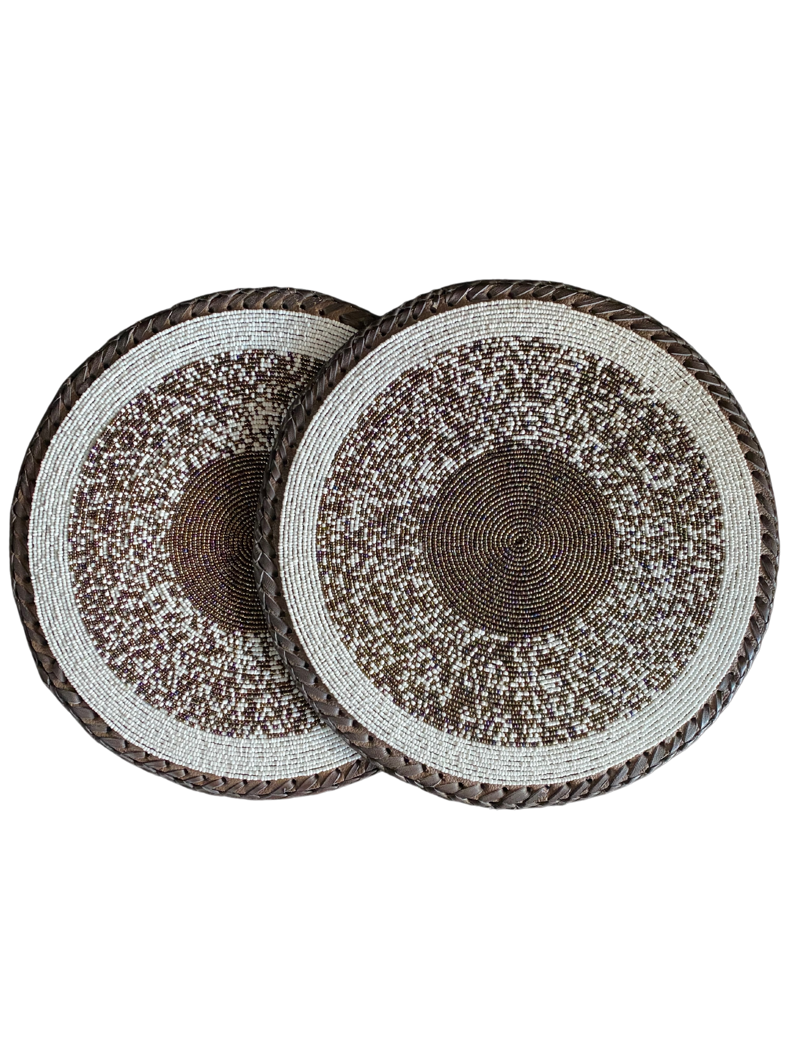 - 2 round beaded-leather table mat