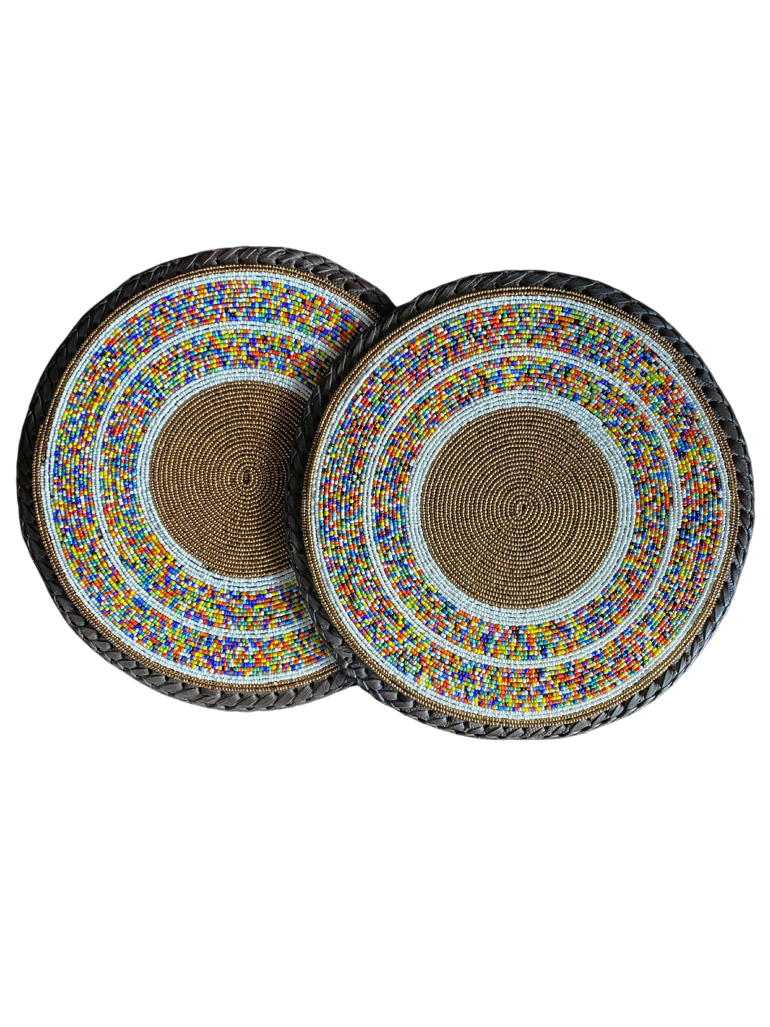 - 2 round beaded-leather table mat set