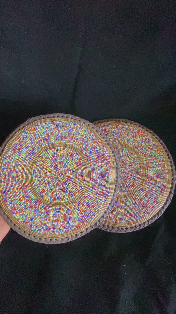 Mixed Color African Beaded Leather Pair Table Mat