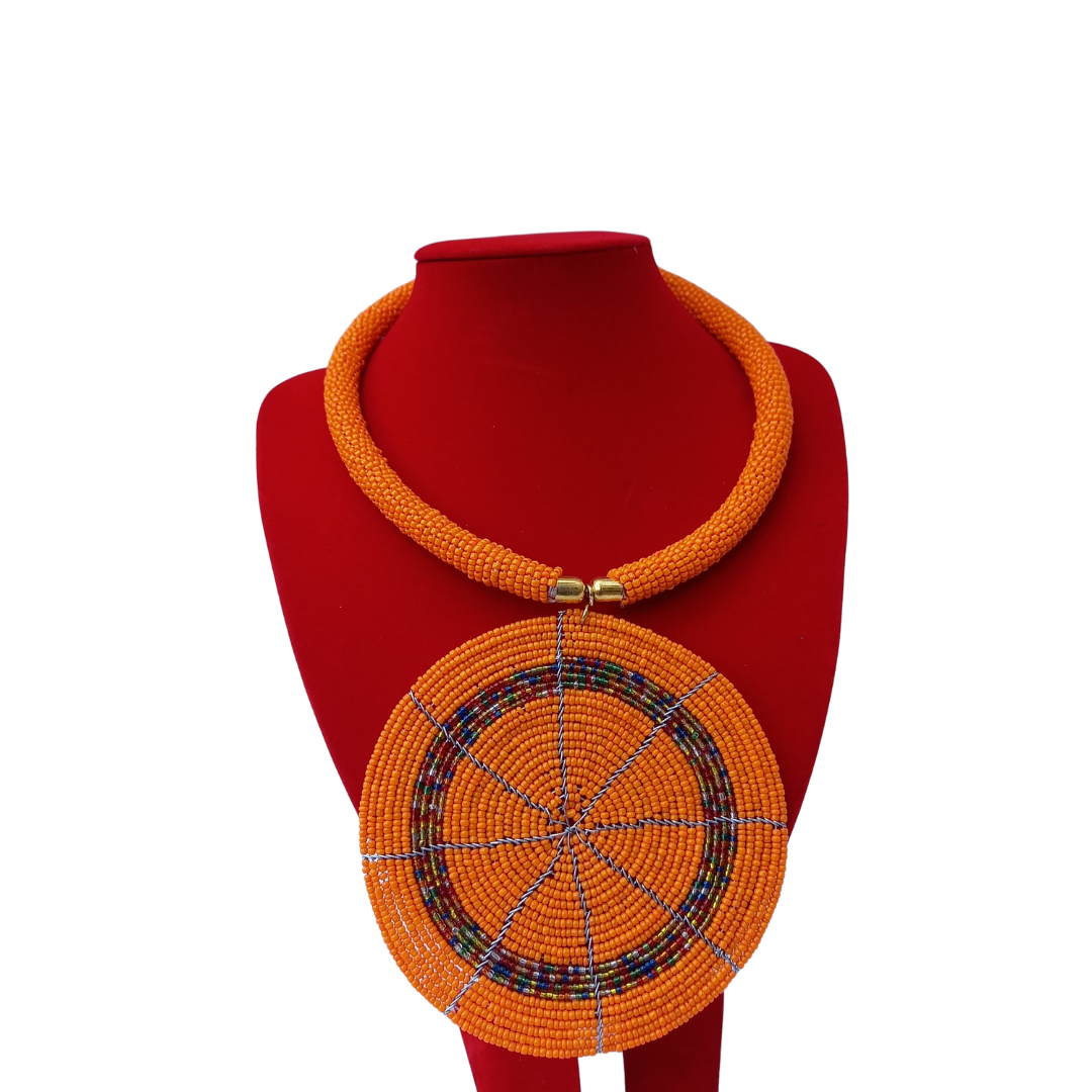 Elevate any outfit with our handcrafted African Single Necklace. Each piece features intricately beaded details to add a touch of traditional African beauty. Perfect for adding a unique statement to your look while supporting skilled artisans. The necklace is  55cm long.