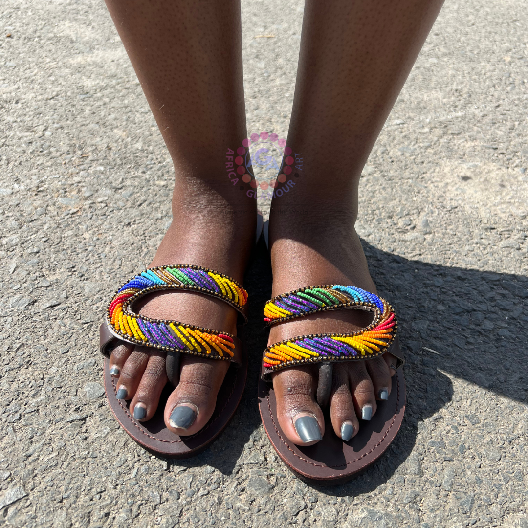 Originating from Kenya, these sandals are a reflection of a long tradition of beadwork and craftsmanship. Passed down through generations, this artistry is a proud part of Kenyan heritage, and each pair of sandals carries forward this legacy. Step into a world of culture and craftsmanship with every step you take.