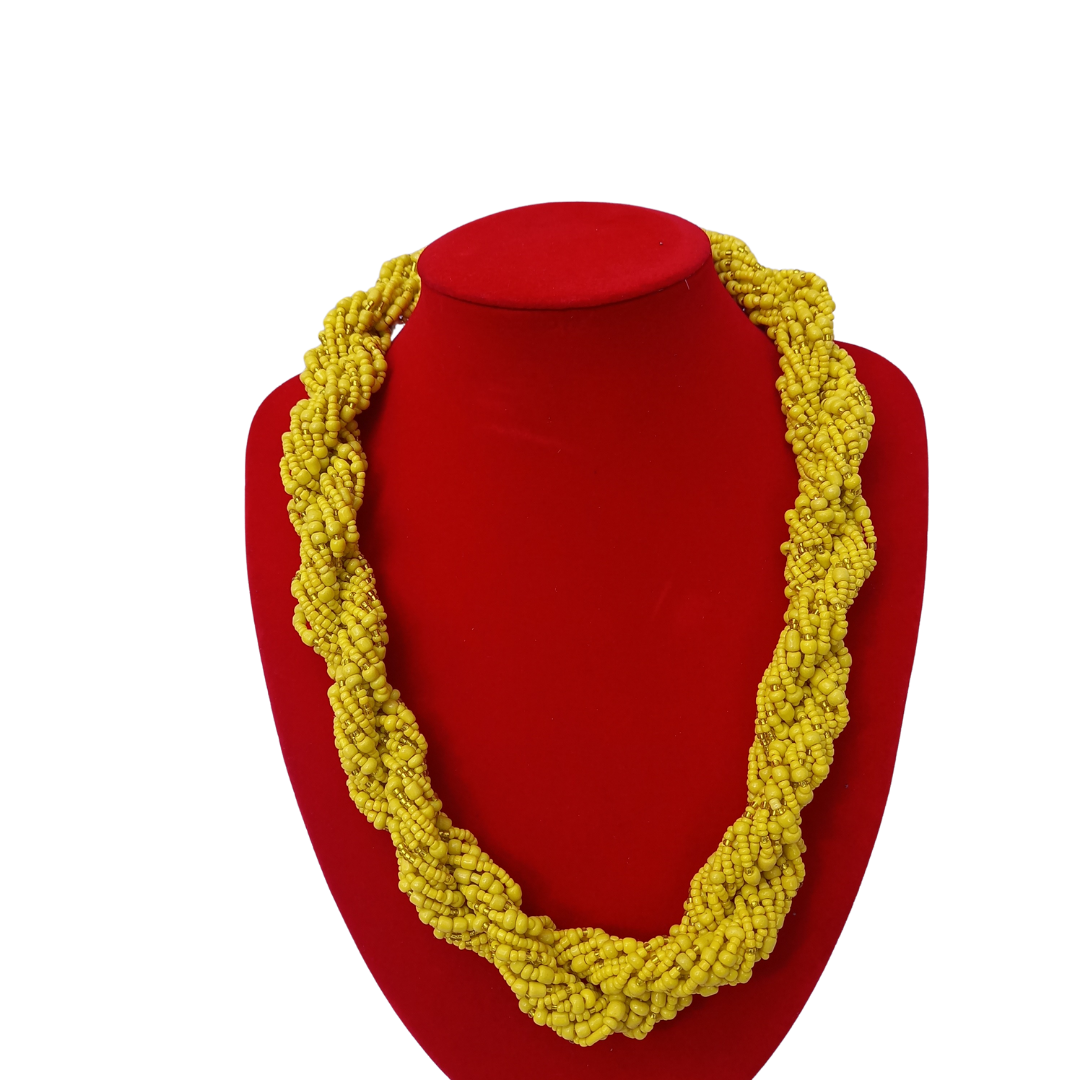 This African Beaded Necklace is a versatile and stylish accessory that can easily elevate any outfit. Handcrafted with traditional African beads, it adds a touch of cultural authenticity to your ensemble. Wear it as a single long necklace. Perfect for expressing your individual style and supporting African artisans.